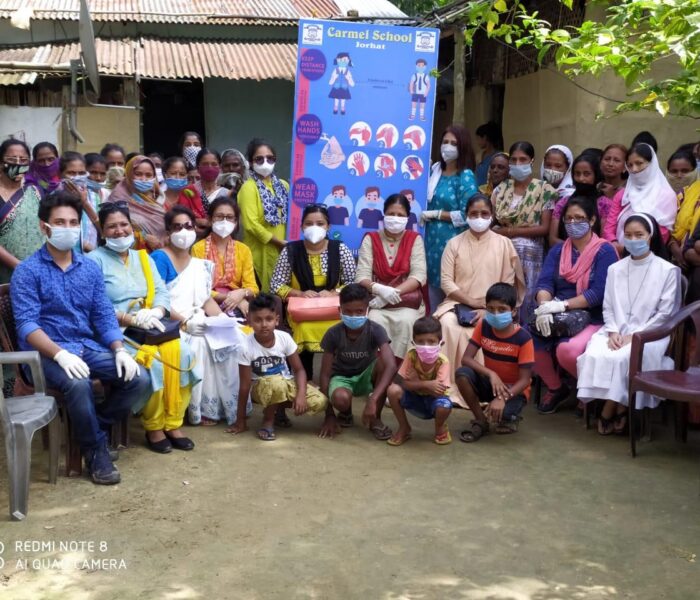 Carmel School , Jorhat > Awareness Programme on the protocols of Covid -19 along with distribution of masks and ration in two of the villages – Chinamora Kathkotia Gaon in Jorhat.